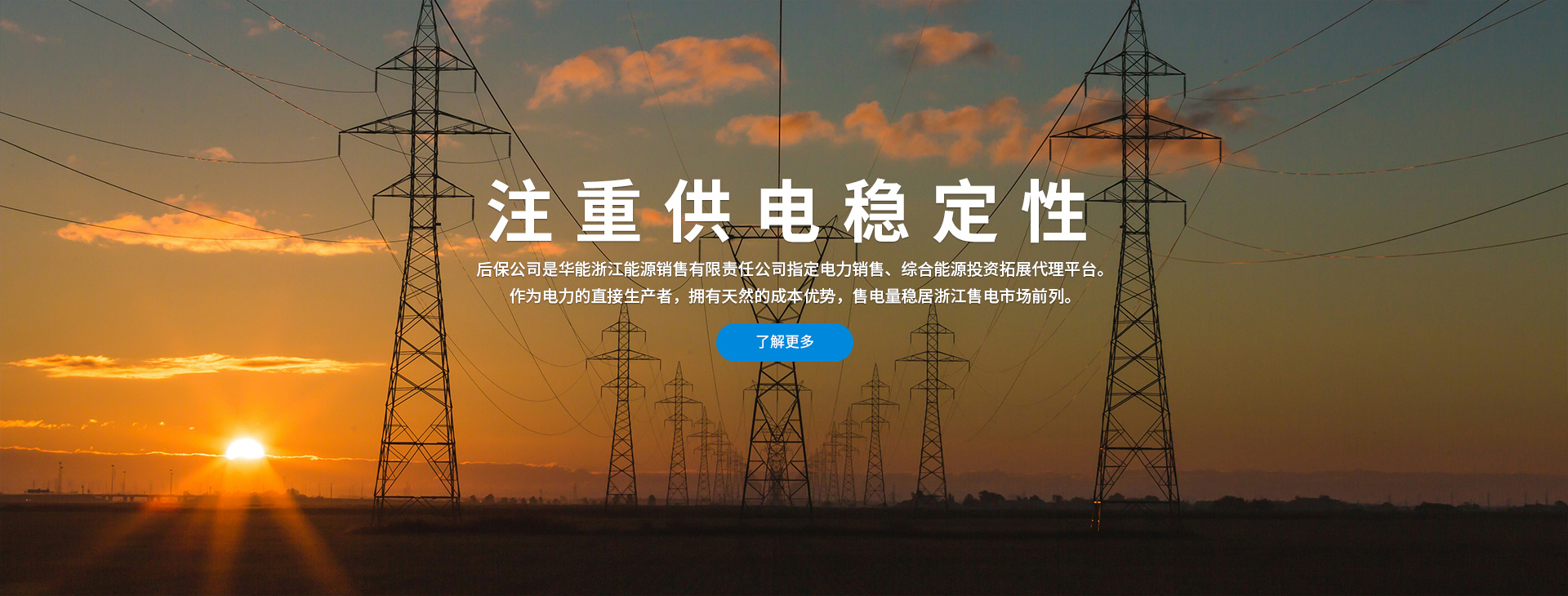 能后保能源技術有限公司是華能浙江能源銷售有限責任公司指定的電力銷售、綜合能源投資拓展代理平臺,主要負責售電代理、分布式能源拓展合作、綜合電力服務、合同能源管理、代理授權、代理培訓、代理結算及建安運維等配套服務工作。公司將高舉中國特色社會主義偉大旗幟,轉方式、調結構、持誠信、重合作、不斷創新、積極進取、服務企業,為國家全面推進電力改革實現碳達峰碳中和的偉大目標做出更大的貢獻。任重道遠須策馬,風正潮平好揚帆。在這個電力企業綠色轉型發展的歷史性機遇期,我們將肩負責任與使命、心懷光榮與夢想,與全體員工砥礪前行,不負各利益相關方的殷切期望,提高運營能力、增強技術實力、煥發組織活力,全力實現“十四五”發展目標,推動多方價值共同提升,同時持續為社會貢獻力量,在成為世界一流的能源供應商、清潔能源開發商、綜合能源服務商的道路上勇攀高峰。